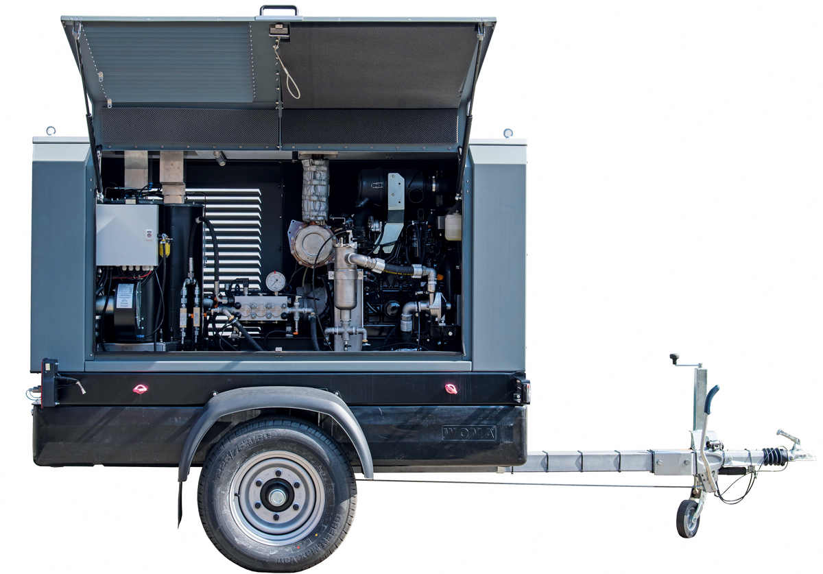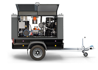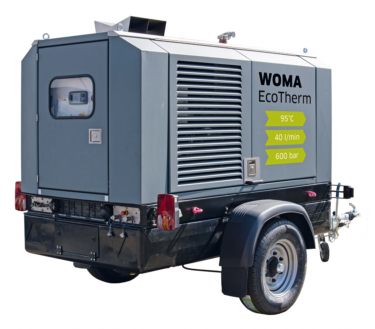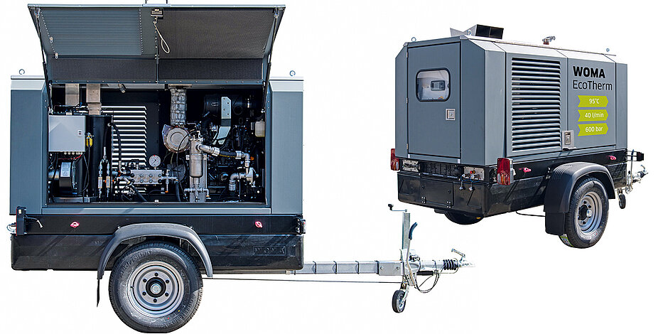 Ausgestattet ist das auf einem 1-Achstrailer verbaute Aggregat mit einer zuverlässigen und langlebigen Woma Hochdruckpumpe 70Y. Die spezielle Plungerpumpe für herausfordernde Anwendungen in der industriellen Reinigung könne dabei mit einer Antriebsleistung von 54 kW überzeugen. Erhältlich ist sie in den Varianten 600 bar und 40 l/min sowie 800 bar und 32 l/min. Mit diesen auf die Heißwasseranwendung optimierten Parametern und der erhöhten Schwemmleistung kann nach Angaben des Herstellers eine gute Reinigungseffizienz erzielt werden.