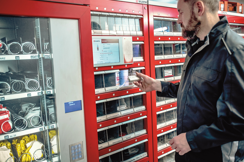 Nach der Planungsphase beginnt die eigentliche Arbeit mit dem Kranbau. Hier setzt das 1974 gegründete Familienunternehmen auf den Orsymat, die Automatenversorgung von Würth. Der praktische Helfer soll eine prompte Materialversorgung von vielen Artikeln, Betriebsstoffen und Leihgeräten rund um die Uhr garantieren.