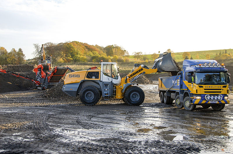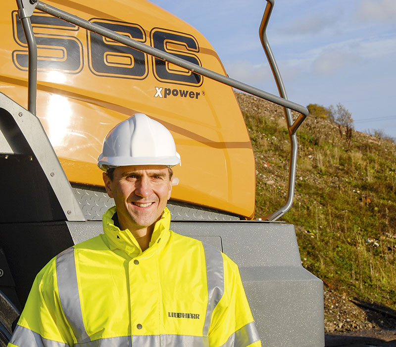 Martin Gschwend bezeichnete in der Zentrale von Liebherr Great Britain in Biggleswade XPower als »ein ganzheitliches, innovatives Maschinenkonzept« für die Radlader L 550 bis L 586, also für die gesamte Palette der großen Liebherr-Radlader mit Standard-Schaufelgrößen von 3,2 m³ bis 6 m³. Herzstück des neuen Maschinenkonzepts ist der leistungsverzweigte, Stufe IV/Tier 4 final konforme XPower-Antriebsstrang. »Die Entwicklungsarbeit verfolgte die Leitlinien Treibstoffeffizienz, Robustheit, Leistungsstärke und Komfort«, sagte Gschwend. »Das Liebherr-Werk in Bischofshofen hat die neuen Radlader härter, ausgiebiger und umfassender getestet als je zuvor. Die Testeinsätze waren enorm vielseitig. So etwa setzten wir unsere Test-Radlader in diversen Steinbrüchen, Sägewerken, Recyclingunternehmen sowie in einer Kompostieranlage ein. Darüber hinaus verluden die Testmaschinen Schlacke in einem Stahlwerk und Kohle in einem Hafen. Vom klassischen Rückverladeeinsatz bis zum kundenspezifischen Spezialeinsatz wurden sämtliche Belastungen erprobt.«