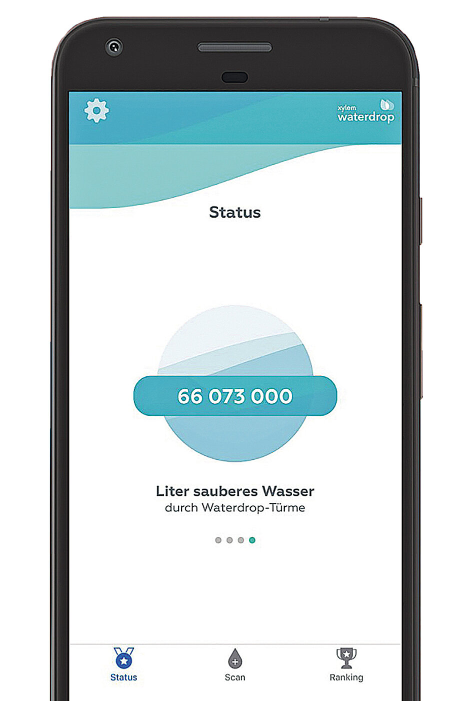 Über die App »Xylem Waterdrop« werden digitale »Wassertropfen« gesammelt. Ein Tropfen steht für 10 l frisches Wasser pro Tag. »Das Wichtigste, was wir als Wassertechnologieunternehmen tun können, ist unser Know-how im Bereich Wasser zu nutzen und dabei anderen zu helfen«, sagt Dan Iversen, Vizepräsident Strategy & Marketing Europe bei Xylem. Waterdrop unterscheide sich von den typischen Kundenbindungsprogrammen, so Iversen. Statt Punkte zu sammeln, um diese dann einzulösen, helfe man gemeinsam mit Kunden und Partnern, indem vor Ort Wassertürme und Haushaltssysteme aufgebaut werden. Programmteilnehmer können mit der »Waterdrop«-App beispielsweise über Social-Media-Kanäle, Webinare, auf Messen und auf Xylem-Veranstaltungen QR-Codes scannen und Punkte (»Tropfen«) sammeln. Die virtuell gesammelten Wassertropfen werden in Trinkwasser umgewandelt. Wer die meisten Waterdrops in einer Saison gesammelt hat, darf in einer Region mit Xylem und Planet Water Wassertürme bauen. Jeder Turm ist so ausgelegt, dass er unkompliziert aufgebaut werden kann und einfach zu warten ist. Mit einer Ultrafiltrationsanlage produzieren die Wassertürme täglich bis zu 10 000 l sauberes Wasser und können so mehr als 1 000 Menschen mit Trinkwasser versorgen. T