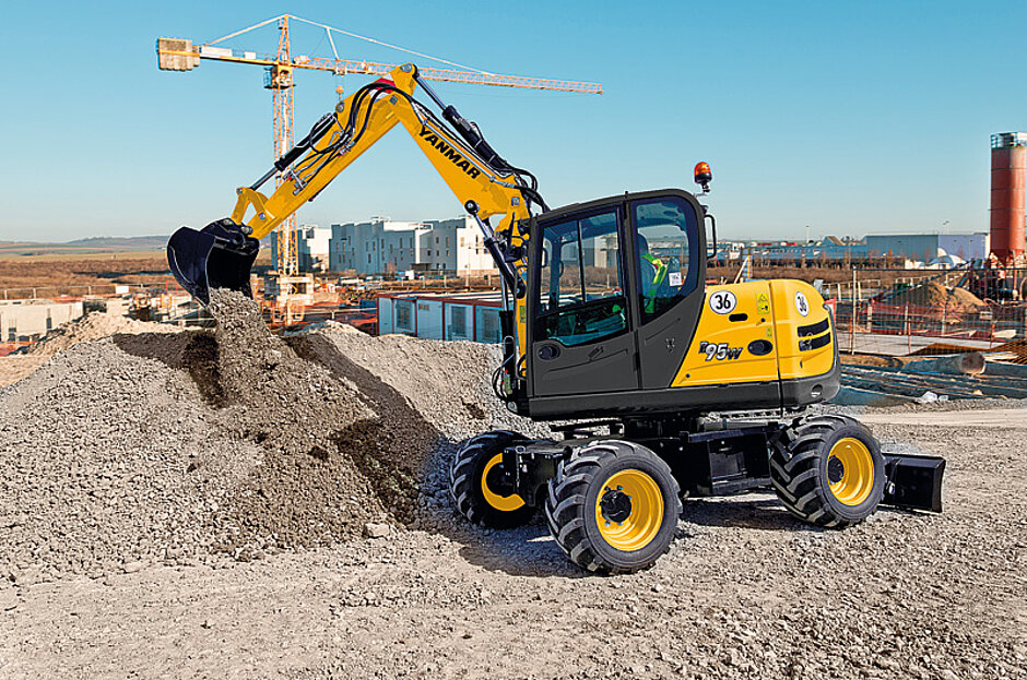 Die drei neuen Mobilbagger B75W, B95W und B110W werden von Yanmar als drei »echte Teamspieler« angekündigt. Jeder für sich soll sich als jene Art von Baumaschine beweisen, die sich jeder Betreiber auf der Baustelle wünscht – vom Landschaftsbau über das Bauwesen bis hin zu Hoch- und Tiefbauprojekten. Dank der Hubkapazität in der Materiallogistik eignen sich die Maschinen insbesondere für den Straßenbau. Aber auch dort, wo Zweige und Baumstämme mit dem Greifer aufgenommen und geladen werden müssen. Der Antrieb erfolgt über Motoren nach EU-Abgasnorm Stufe IV/EPA Tier 4.