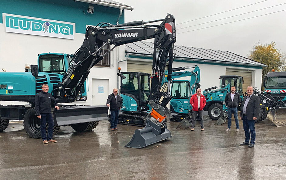 Im KLMV-Sortiment waren die passenden Modelle schnell gefunden: Luding kaufte die Minibagger SV18, ViO33 und ViO38 für Zuarbeiten, speziell beim Verlegen von Wasser- oder Gasleitungen. Für den Kanalbau wählte der Tiefbauspezialist zwei Radlader der Serie V70S für das Verfüllen von Gräben sowie einen B110W. Die neuen Maschinen wurden in Yanmars Werk in Crailsheim in den Unternehmensfarben von Luding lackiert und ausgeliefert. Die Übergabe der Maschinen fand Ende Oktober statt. t
