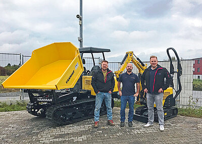 Mit seinen großen Hubkräften transportiert der 11-t-Bagger auch besonders schwere Lasten, die dank der feinfühligen Hydraulik präzise platziert werden können. Die Parameter sind für den Tiefbauspezialisten Grillenberger besonders wichtig. Der Aushub tiefer Gräben, das Verladen von Aushubmaterial auf erhöhte Ladeflächen und das präzise Platzieren von Leitungen in der Tiefe sind Aufgaben, die alltäglich schnell und einfach erledigt werden müssen. Beide B110W wurden im Yanmar-Werk in Crailsheim gefertigt und individuell nach den Vorgaben von Grillenberger lackiert. Die Montage von Schmieranlage, Schnellwechsler und weiteren Anbauteilen übernahm der Yanmar-Händler Engelhardt in der hauseigenen Werkstatt. »Wir haben die Bagger genau auf unseren Bedarf angepasst. Dank der vielen zusätzlichen Optionen und Anbauteile, die man bei Yanmar auswählen kann, war dies überhaupt kein Problem«, betont Geschäftsführer Gerd Grillenberger. t