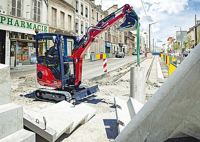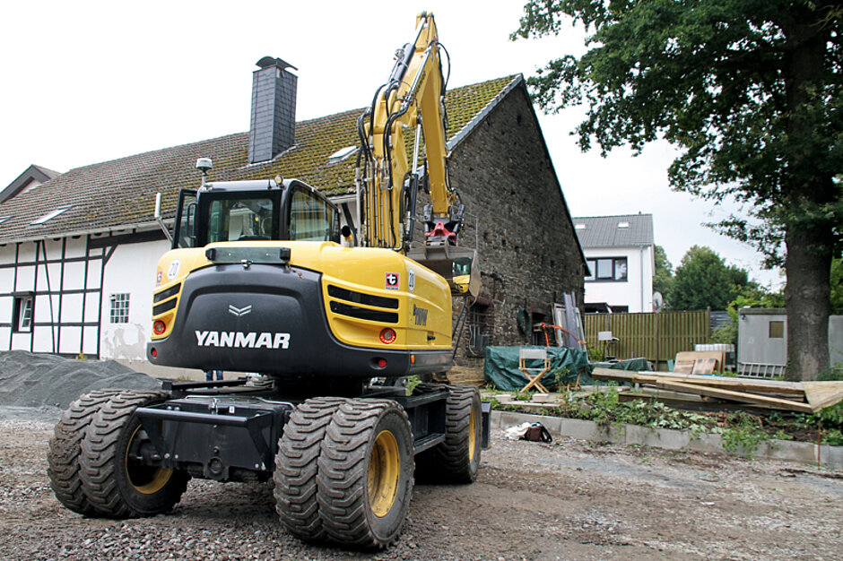 In Schwerte-Holzen errichtet der Landschaftsverband Westfalen-Lippe (LWL) eine Wohneinrichtung für Menschen mit psychischen Behinderungen. Die Gestaltung der Außenanlagen obliegt Landschaftsbau Vest aus Recklinghausen. Seit Mai ist das Team von Geschäftsführer Christoph Kirschner in Schwerte im Einsatz. »Der Yanmar wird hier hauptsächlich für Ausschachtungen, Planierarbeiten und das Verteilen von Schotter eingesetzt«, berichtet Kirschner. »Mit dem B110W haben wir definitiv eine gute Wahl getroffen. Aufgrund der mangelnden Bodenstabilität und der Höhenunterschiede auf dem Gelände sind wir froh, eine so zuverlässige Maschine zu haben.«