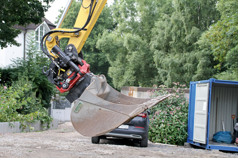 Ein Tiltrotator wird zwischen Baggerausleger und dem jeweiligen Anbaugerät angebracht. Mit seiner Hilfe kann der Baggerfahrer das Anbaugerät schwenken und drehen. »Ein Tiltrotator ist mit einem Handgelenk vergleichbar«, veranschaulicht Schwenniger. Der RS-Tiltrotator von Rototilt ist bis zu 40° kippbar und endlos drehbar: So können Anbauwerkzeuge in der gesamten Reichweite des Auslegers in jede beliebige Position gebracht werden. Der Bagger arbeitet so um Hindernisse herum, ohne umgesetzt werden zu müssen. Dank der vergrößerten Bewegungsfreiheit der Ausrüstung kommt die Maschine zusätzlich mit weniger Arbeitsraum aus.