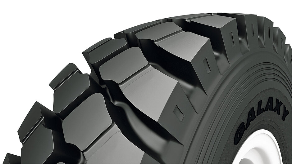 Der Wahlspruch der Galaxy-Reifen »application specific, purpose built« soll auch für den Galaxy LDSR 510 gelten: Die nicht laufrichtungsgebundenen Profilblöcke gewährleisten laut Hersteller sowohl im Vorwärts- als auch im Rückwärtsgang bei Traktion und Stabilität vergleichbare Leistungen und ermöglichen einen günstigen, verschleißmindernden Lauf der Reifen. Die hochgezogene Karkasse schützt den Reifen vor äußeren Beschädigungen sowie vor Einschnitten in der Seitenwand, insbesondere bei schnittgefährdeten Einsätzen, und unterstützt eine höhere seitliche Festigkeit, besseren Fahrkomfort und eine längere Lebensdauer. Mit den beiden neuen Größen ist der Galaxy LDSR 510 als 17.5R25, 20.5R25 und 23.5R25 erhältlich. t