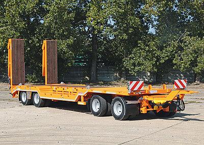 Für den abgesicherten Kippbetrieb sorgt ein Kippbegrenzungsventil. Die beidseitigen Abstellstützen sind sowohl beim Kippen als auch beim Ladevorgang über die Alurampen für einen stabilen Stand ausgelegt. In einem absperrbaren Rampenschacht sind die Alurampen aufbewahrt. Die Bewegung erfolgt auf Kunststoffrädern, sodass der Schubkraftaufwand minimal sein sollte. Das multifunktionale Beleuchtungssystem in 12V/24V-LED-Ausführung ermöglicht neben dem Lkw-Einsatz auch eine optionale Traktorverwendung. t
