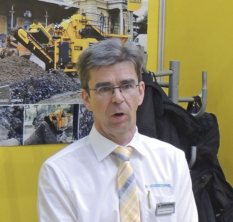 Neben den auch auf der Steinexpo zu sehenden Warrior 2100, Rubble Master RM 70 Go und CitySkid 7V4 sowie dem TCL431 von Telestack wird in Neumünster der Backenbrecher Premiertrak 300 von Powerscreen ausgestellt. Über die lange Rinne oder dem aktiven Vorsieb aufgegeben, erreicht das Brechgut den 1 000 x 600 mm großen Einschwingen-Backenbrecher. Stufenlos wird der Spalt mittels hydraulischer Keilverstellung auf das gewünschte Maß eingestellt und schon geht die Produktion los. Moniereisen spuckt der Brecher auf die hydraulisch angelenkte Flipperplatte und erst dann auf den Gurt. So wird dieser geschützt. Verstopfer beim Austrag sind dank des glatten Tunnels unwahrscheinlich. Falls sie doch auftreten, senkt der Bediener das Austragsband ab und der Stau wird aufgelöst. Der Premiertrak 300 werde den Markt schnell erobern, zeigen sich die Verkäufer von Christophel sicher. Das Unternehmen zeigt zudem mit der Portafill 2000 eine »narrensichere« und günstige Grobstücksiebmaschine. Ohne Sondertransport gelangt die Maschine zum Einsatzort. Das Feinband ausgeklappt und schon geht es los. Bei der PF 2000 befördert der Radlader oder Bagger das Siebgut direkt auf die Doppeldeckersiebmaschine. Fungiert das Oberdeck als Schutzdeck, so können mit dem Unterdeck Trennschnitte zwischen 15 mm und 80 mm wirtschaftlich hergestellt werden. Das ist verschleißarm und sehr platzsparend. Die PF 2000 findet ihre Liebhaber vornehmlich im Bauschuttrecycling und der Bodenabsiebung.