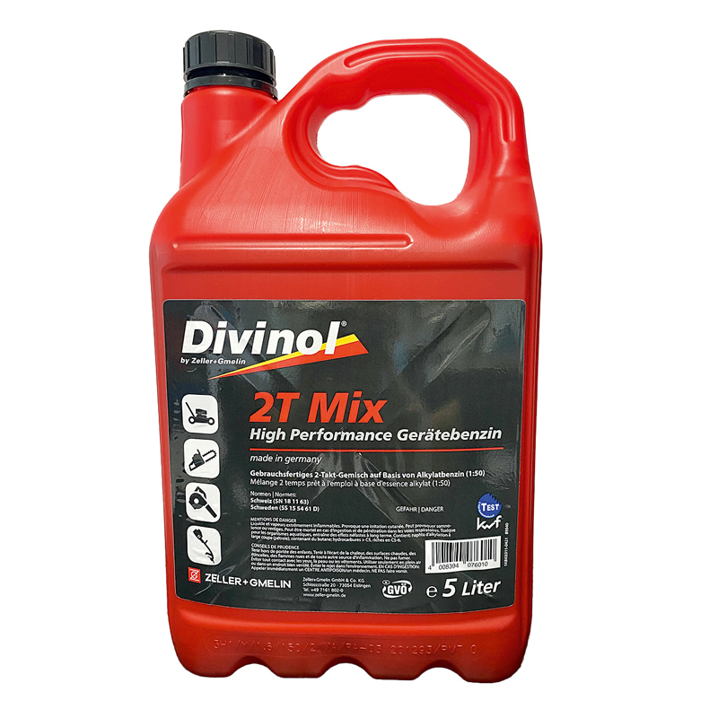 »Divinol 2T Mix ist ein gebrauchsfertiges 2-Takt-Gemisch auf Basis von Alkylatbenzin und hat dafür das Prüfzeichen des Kuratoriums für Wald + Forst (KWF) erhalten«, sagt Andreas Krapf und betont: »Nicht umsonst nennt man diese Art von Sonderkraftstoffen auch ›grünes Benzin‹.«