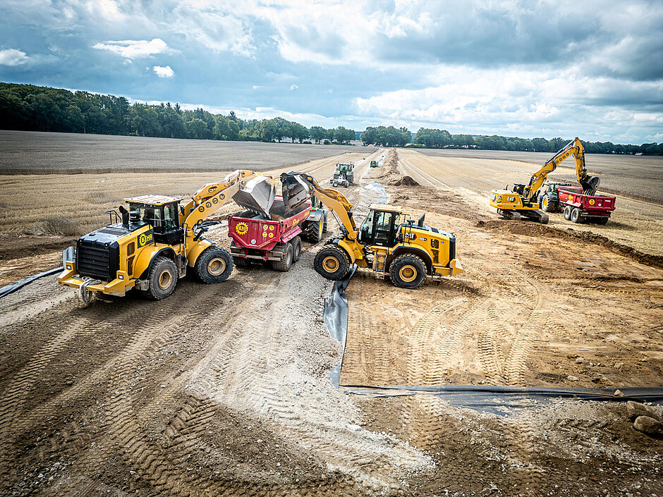 Ein Beispiel dafür ist aktuell die Baustelle für einen Windpark in Kloddram. Das Lohnunter-nehmen übernimmt dort mit Kettenbaggern und Radladern die Erschließung, damit später neun Windkraftanlagen gebaut werden können. Dafür wird beispielsweise Mutterboden abge-tragen und 120 000 t Material an Schotter eingebaut. Ein Teil der Wege wird temporär sein, ein anderer später als Wartungsstraße genutzt. Außerdem werden eine Lagerfläche und eine Fläche zur Montage errichtet. Hinzu kommt der Aushub an Fundamenten. „Wir übernehmen nicht nur Dienstleistungen, sondern arbeiten auch für Endkunden, wenn diese Erdarbeiten benötigen“, beschreibt Carsten Behr die Vielseitigkeit.