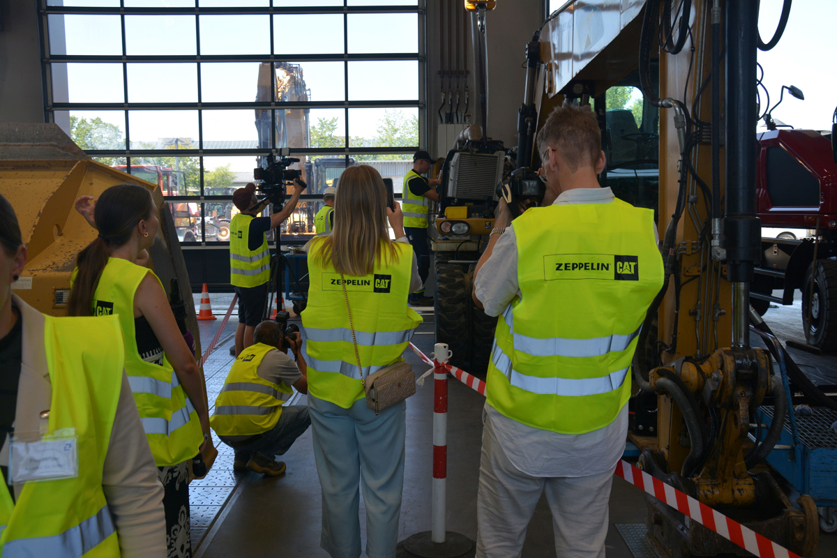 Beim gemeinsamen Werkstattbesuch konnten Journalisten und die Vertreter der Agentur für Arbeit die Faszination des gelben Eisens hautnah erleben. Inmitten von Baggern und Radladern berichtete Timm Fritsch von seinen Erfahrungen, demonstrierte am Schraubenschlüssel das Gelernte und schilderte eindrücklich von seiner Begeisterung. Philip Wolters nutzte die Gelegenheit, Zeppelin als Arbeitgeber vorzustellen und berichtete von intensiven Bemühungen, auf Ausbildungsbörsen und anderen Veranstaltungen auf den Beruf des Land- und Baumaschinemechatronikers für Ausbildungswillige aber auch Quereinsteiger aufmerk-sam zu machen.