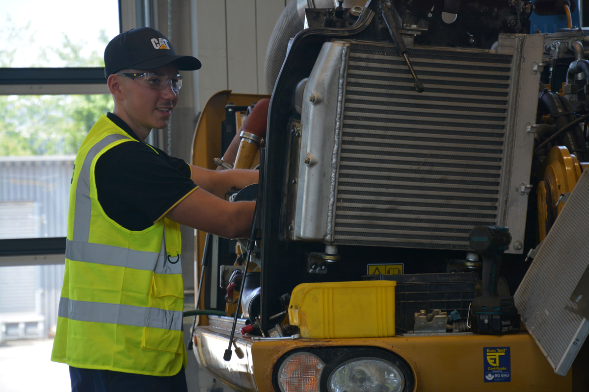 Anschaulich berichtete der Zeppelin Azubi, wie ihn Land- und Baumaschinen schon von Kindesbeinen an fasziniert haben. Entsprechend war dem 17-Jährigen nach der Schule klar, wo-hin die Reise gehen würde. „Etwas anderes kam für mich überhaupt nicht in Frage“, ist er nach Abschluss des ersten Lehrjahres umso mehr von seiner Entscheidung überzeugt. Dazu gehört auch das wertschätzende Miteinander in der Baumaschinen-Werkstatt, wo ihm die erfahrenen Kollegen wertvolles Wissen vermitteln und gleichzeitig viel Vertrauen entgegenbringen. „Wir sind mit Ernst bei der Sache und haben dennoch ganz viel Spaß bei der Arbeit“, betont der Azubi. Er versicherte, dass er dabei auf volle Unterstützung der Kollegen zählen könne.