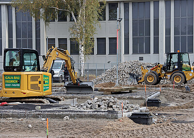 Auch bei anderen Profilierungsarbeiten, wie sie etwa beim Anlegen von Böschungen erforderlich sind, soll die GPS-Steuerung die Baggerfahrer beim Aushub und Einbau von Boden unterstützen. Aktuell wird die neue Baumaschine zum Bau eines Lärmschutzwalls entlang der A5 bei Weingarten eingesetzt, um den Wall von der Basis bis zur Oberkante anzulegen und zu profilieren, um anschließend eine natürliche Abdeckung aufzubringen. Dabei ist Präzision gefragt, um die Böschung in dem vorgegebenen Winkel herzustellen und um eine Lagegenauigkeit von bis zu drei Zentimetern entsprechend dem Geländemodell einzuhalten. Der Einsatz von 3D, ob über oder unter Wasser, ist keine große Umstellung für die Fahrer. „Wir arbeiten schon lange mit Steuerung“, sagen Dirk Singer und Patrick Burgard unisono.