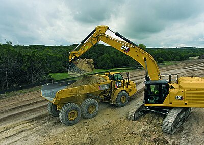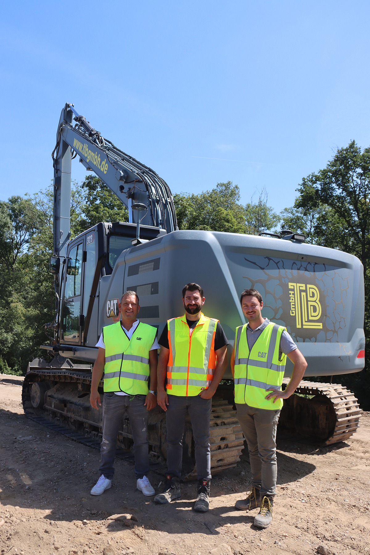 Der neue Böschungsbagger ist nicht der einzige Vertreter der neuen Baumaschinengeneration. Den Maschinenpark verstärken zwei weitere Cat 323 und ein Cat 336. Auch hier sind Assistenzsysteme wie 3D oder die Kontrollwaage Payload verfügbar, auf welche die Fahrer zugreifen können. Dennoch gab es für vier von ihnen eine Einweisung, wie sie die Kalibrierung und die Einmessung des Löffels vornehmen müssen. „Immer wieder müssen wir das Messer auf Verschleiß kontrollieren. Die Abnutzung messen wir mit einem Maßband aus und geben den Wert über den Touchpad-Monitor in der Kabine ein“, so Dirk Singer. Schließlich soll das neue Flaggschiff auch richtig eingesetzt werden. Eine Maschinensteuerung ist bei dem Unternehmen seit der Firmengründung 2014 Standard und fest installiert ab Werk oder wurde nachgerüstet für alle Kettenbagger und Kettendozer, mit denen das Unternehmen Arbeiten im Tiefbau, dem Böschungsbau sowie Erdarbeiten ausführt.