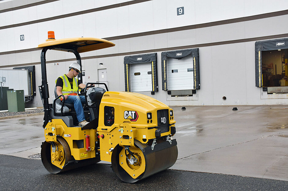 Die überarbeiteten Bedienelemente verfügen über praktische Wippschalter und ein Cat-Display für eine intuitive Bedienung. Die automatische Vibrationskontrolle stoppt die Vibration, wenn der Fahrhebel in der Neutralstellung ist, um Markierungen auf der Asphaltmatte zu vermeiden. Optional verfügbare beidseits angebrachte Doppelfahrhebel erhöhen den Bedienkomfort. Mit Verdichtungsbreiten von 1 000 mm bis 1 300 mm verfügen die neuen Cat-Tandemwalzen über große Bandagendurchmesser von 720 mm für glatte Oberflächen. Verstärkte 14 mm dicke Bandagen sollen für mehr Haltbarkeit und eine höhere Verdichtungsleistung durch das höhere Gewicht sorgen. Der Bandagenversatz der Walzen von 50 mm verbessert die Verdichtungsleistung beim Walzen neben Bordsteinen. Ein schmales Rahmen-Design ermöglicht eine bessere Sicht auf die Arbeitsfläche und den Bandagenrand. Das optionale Verdichtungsmesssystem (CMV) verbessert die Verdichtungsqualität, vermeidet unnötige Überfahrten und erhöht die Materialkonsistenz.