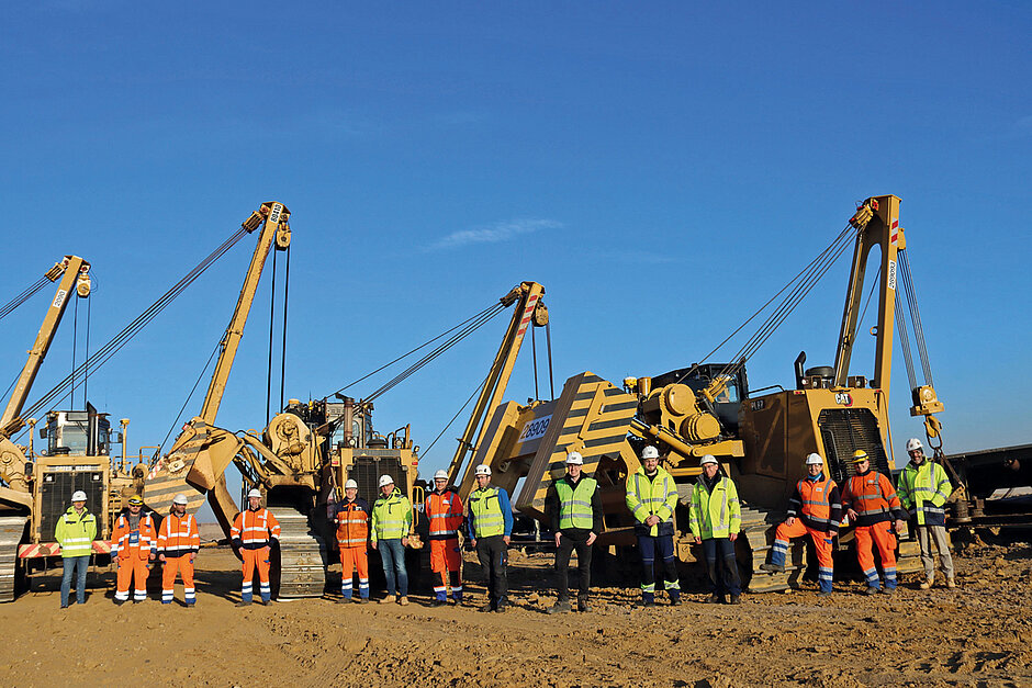 »Das Ganze war echtes Teamwork«, erklärt Stefan Lanio, Zeppelin Niederlassungsleiter, stellvertretend für die beteiligten Kollegen. Weil das Modell, ein Cat 589, der sonst im Tagebau Garzweiler im Einsatz ist, nicht mehr lieferbar war, musste eine Alternative her, die nach RWE Standard modifiziert wurde. Mit Produktmanager Fabian Kröger hat Gebietsverkaufsleiter Dietmar Steiger die Details bei der Beschaffung einer Alternative inklusive der Sonderausstattung samt Zubehör abgestimmt und dann mit der Einkaufsabteilung von RWE Power verhandelt. Der PL87 ist derzeit das größte Modell an Rohrverlegern, das zurzeit von Caterpillar gebaut wird.