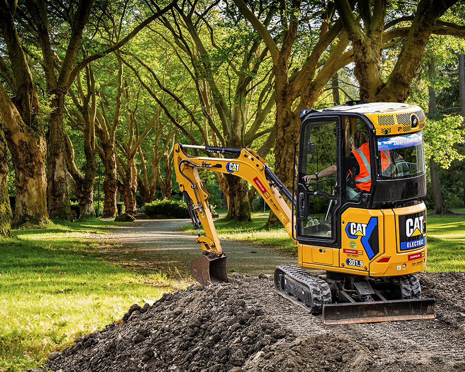 Mit dem Cat 301.9 führen Zeppelin und Caterpillar den ersten batterieelektrischen Minibagger ein. Der Elektro-Bagger verfügt mit einem Akku-Pack von 32 kWh (48 Volt) über die größte Batterie der Zwei-Tonnen-Klasse. Damit reicht die Kapazität für eine Tagesschicht von acht Stunden. Ein Einsatz bietet sich etwa im Garten- und Landschaftsbau an. Bis zu fünf Stunden Dauereinsatz bei schweren Einsätzen mit Hammer oder langen Fahrtstrecken sind möglich. Neben den klassischen Baustelleneinsätzen empfiehlt sich der Stromer vor allem für Arbeiten in emissions- und lärmsensiblen Umgebungen, wie innerhalb von Gebäuden und auf innerstädtischen Baustellen.