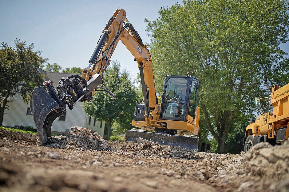 Dank Tiltrotator kann eine Kompaktmaschine mehr Arbeitsbereiche von einer einzigen Position aus erreichen und die Werkzeuge beim Ausheben, Planieren von Gräben, Sortieren von Recycling-Material oder Verlegen von Rohren über, unter und um Hindernisse herum manövrieren. Die neuen TRS-Modelle sollen die Vielseitigkeit des Minibaggers deutlich erhöhen und sind in verschiedenen auf die jeweilige Anwendung abgestimmten Konfigurationen erhältlich.