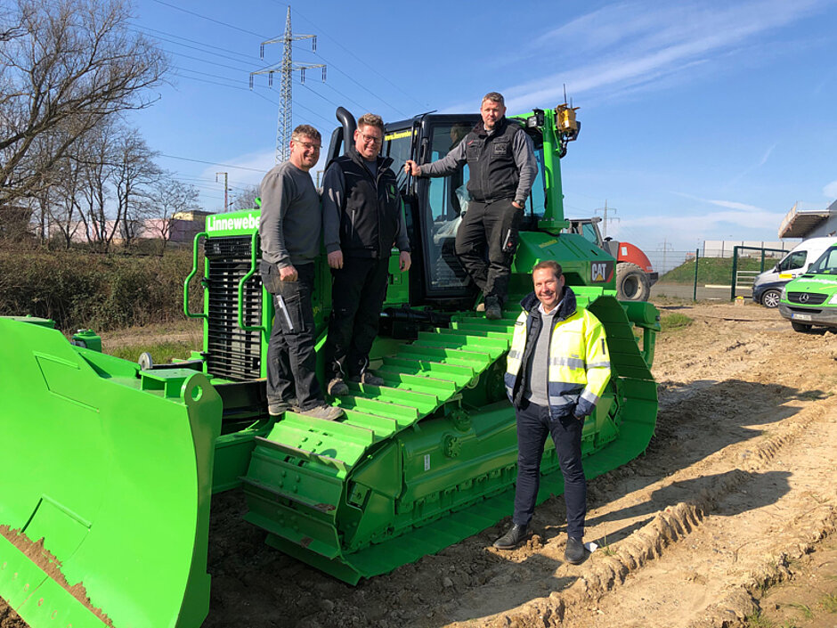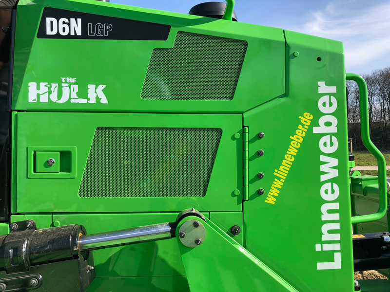 Die grasgrüne Farbe ist das Erkennungszeichen von Hulk, einer Comicfigur. Sie wurde mit einem Zeichentrickfilm bekannt, der davon handelt, wie der Nuklearphysiker Dr. Robert Bruce Banner bei einer Explosion zu viel Gammastrahlen abbekam und so zu einer übermenschlichen grünen Kreatur wurde. Wegen der Kolorierung der Baumaschine in der Firmenfarbe wurde das neue Arbeitsgerät in Form des Cat D6N beim Garten- und Landschaftsbauunternehmen Gerd Linneweber aus Dortmund auf den Namen des Superhelden getauft. Die Raupe ist zum Modellieren von Flächen mit anschließendem Oberbodenauftrag vorgesehen, aber auch im Erdbau hat sie ihr Betätigungsfeld, um ein Planum anzulegen. Aktuell ist der Kettendozer dabei, Flächen für Lärmschutzwände an der ehemaligen Sinteranlage auf der Westfalenhütte zu profilieren. „Mit diversen Verhaltensregeln und Vorsichtsmaßnahmen zum Schutz unserer Mitarbeiter und Kunden können wir weiterhin arbeiten, und das ist auch gut so“, erklärt Frank Linneweber, der zusammen mit seinem Bruder Karsten Geschäftsführer bei der Gerd Linneweber Landschaftsbau GmbH ist. Der weitere Bruder Dirk ist Geschäftsführer bei der Nachtigall GmbH, die ebenfalls zum Firmenverbund gehört.