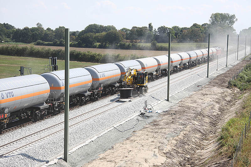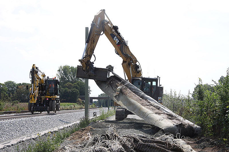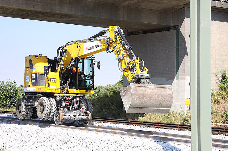 „Die nächsten Wochen werden wir das Gerät richtig hart rannehmen. Bislang hat die Maschine eher leichte Arbeiten verrichtet. Dabei lief der Bagger aber schön ruhig auf dem Gleis und hat durchaus gezeigt, dass Kraft in ihm steckt“, so Kassner. Einen Anschlussauftrag hat Wittfeld mit den Partnern Matthäi Trimodalbau und Eiffage Rail bereits in der Tasche: der umfangreiche Umbau des Bahnhofs Sande. Der Spatenstich hierfür ist am 27. August geplant.