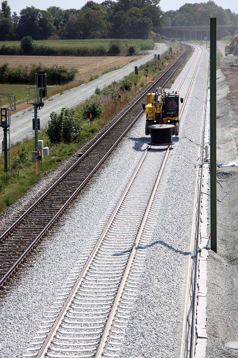 Darüber hinaus sind auf 17 Kilometern Länge Entwässerungssysteme wie Bahngräben und Tiefentwässerungen anzulegen. Außerdem werden durch die Firma Eiffage Infra-Lärmschutz (vormals MDM) Lärmschutzwände aus Aluminium beidseitig der Bahnstrecke auf rund 870 Meter Länge, und zwar auf zwei Metern über Schienenoberkante im Bereich der Ortslage Ellenserdammersiel, hergestellt. Im Abschnitt zwischen Varel und der Überleitstelle Schwarzer Rabe wird noch bis Ende August das linke Gleis gebaut. Erstmals sollen Züge darauf am 25. August fahren. Dann machen sich die Mitarbeiter von Wittfeld und den Arge-Partnern an die Arbeiten rund um das Nachbargleis, das bis 2020 fertig sein soll.