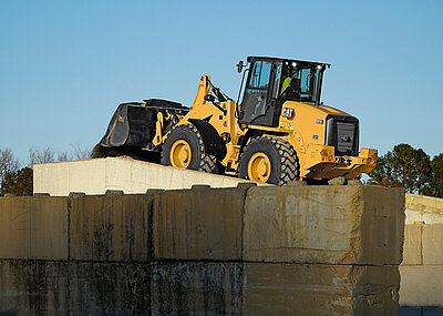 Die passende Maschine war die gemietete Cat-Walze CS-64B, die laut Isbaner von früh bis spät unterwegs war. Hohe Vibrationskräfte und ein Gewicht von 12 t wirken bei dem Walzenzug über die Glattmantelbandage auf den Untergrund und schaffen so ein optimales Verdichtungsergebnis. Erst danach konnten die Fundamente für die Stützpfeiler der Halle gegossen werden. Darüber hinaus mussten die Erschließung des Grundstückes vorgenommen, Schächte ausgehoben und Wasser- und Abwasserkanalleitungen gelegt werden. Auch hier bewährte sich das Equipment: Der Cat-Mobilbagger 315F hob die Schächte aus, die beiden Radlader transportierten per Lastgabel die Betonteile des Kanals. Anschließend wurden sie mithilfe des am Baggerausleger montierten Rohrgreifers RG 20/80 in den Schacht eingehoben. Für das Verladen der tonnenschweren Stahlelemente waren dann die Merlo-Allradteleskopstapler 60.24 Roto von Zeppelin Rental hilfreich. t