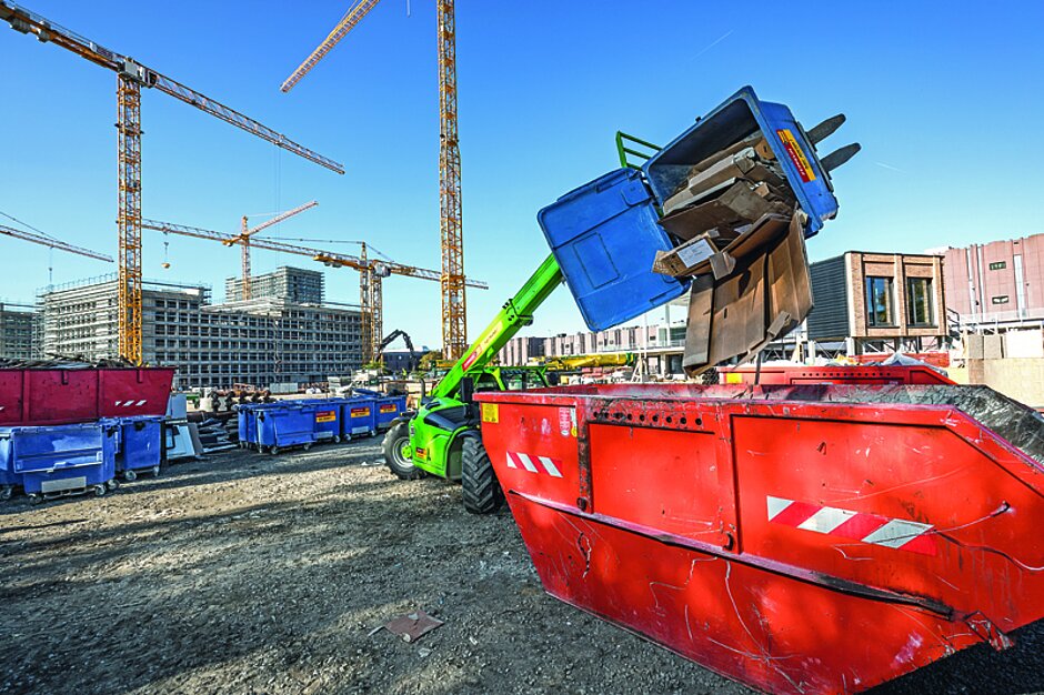 Je nach Kundenwunsch übernimmt Zeppelin Rental das Sammeln und Trennen des Mülls am Entstehungsort und legt die Kosten anteilig auf die Gewerke um. Alternativ werden die kleineren Vorsammelbehälter an die einzelnen Gewerke herausgegeben und diesen mithilfe von Barcodes auf jedem Baustellenausweis und Behälter eindeutig zugeordnet. Bei der Rückgabe der Behälter werden die Codes mit einem mobilen Gerät gescannt, Art und Menge des Mülls werden genau erfasst. So bezahlt jeder Betrieb am Ende nur die Entsorgung des Mülls, den er tatsächlich verursacht hat. »Unsere Entsorgungsmodelle sind so vielseitig wie unsere Kunden und ihre Projekte«, so Angelo Butera, Bereichsleiter Logistics, Consulting & Management bei Zeppelin Rental. »Wir erstellen ein umfassendes, auf die jeweilige Baustelle abgestimmtes Entsorgungskonzept und gewährleisten eine sortenreine Abfalltrennung sowie lückenlose digitale Dokumentation.«