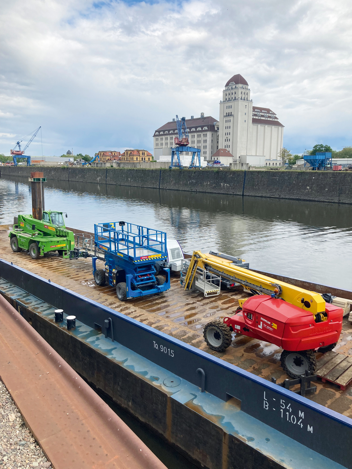 Doch als Robert Pönisch von der Idee hörte, war er zunächst skeptisch: »Wenn der Untergrund schaukelt, lassen die Sensoren nur noch lastmindernde Bewegungen zu. Folglich könnte man den Teleskoparm des Merlos nur noch ein-, aber nicht mehr ausfahren. Der Ponton hat jedoch ausfahrbare hydraulische Stützen, die für die Stabilität gesorgt haben«, so der Sales Manager.