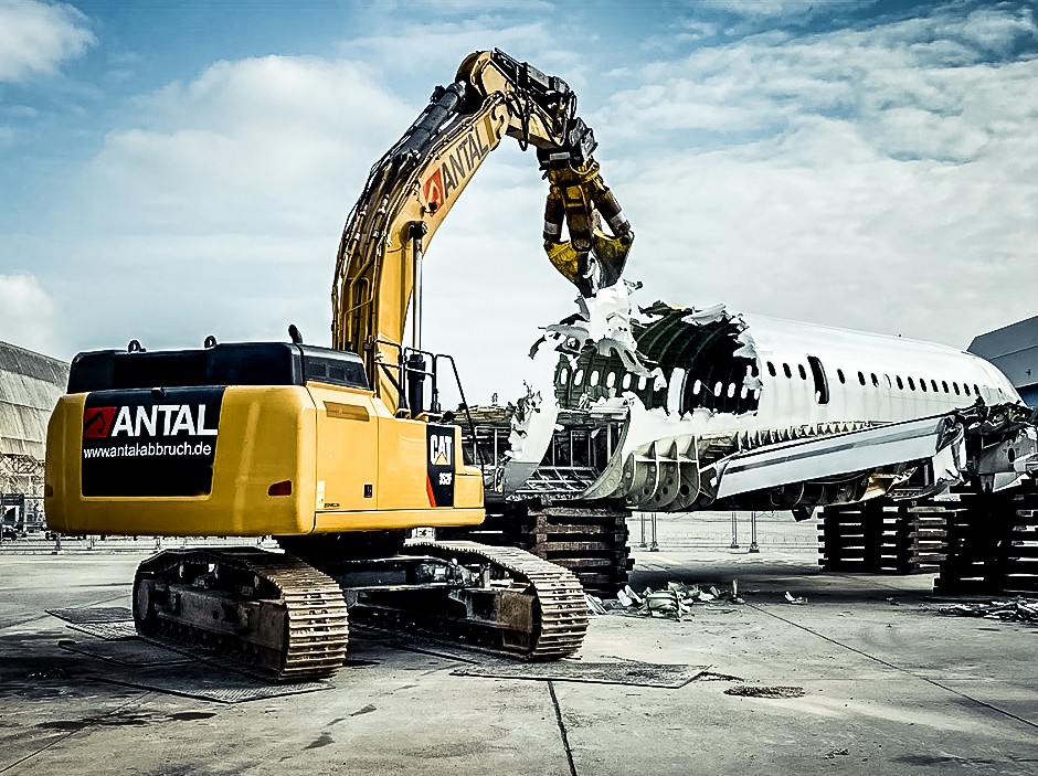 Normalerweise macht die Baumaschine Gebäude platt und zerlegt sie in die einzelnen Be-standteile Beton und Stahl. Der 53-Tonnen-Koloss ist für gewöhnlich vonnöten, wenn beson-ders schweres Geschütz erforderlich ist und es hart zur Sache geht. Doch nun hat der Bag-ger, den Harald Eichmann von der Zeppelin Niederlassung Hanau an Antal lieferte, ein weite-res Betätigungsfeld gefunden: den Flugzeugrückbau.