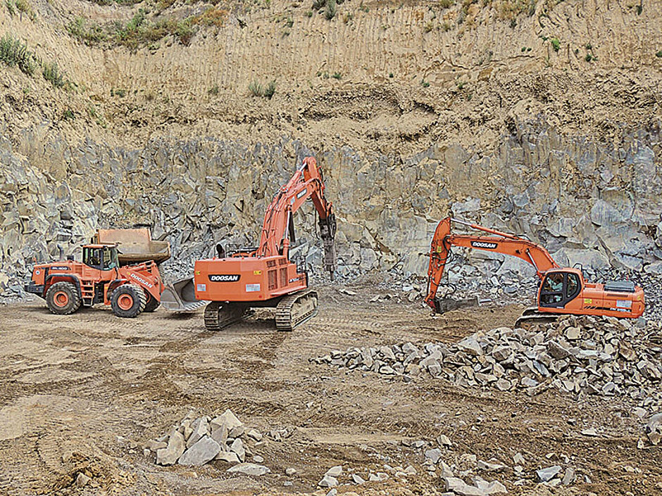 Dass sich die Geschäftsbeziehung zwischen Mendiger Basalt und Bobcat Koblenz zu einer vertrauensvollen und langfristigen Partnerschaft entwickelt hat, zeigte sich auf der Bauma 2013 beim Kaufabschluss über den größten Doosan-Kettenbagger DX700LC. Rainer Krings begründet seine Entscheidung für das 71 t-Modell: »Um der permanent steigenden Nachfrage noch schneller gerecht zu werden und damit erfolgreich weiter zu wachsen, sind wir auf eine technisch hochwertige und betriebssichere Maschine angewiesen. Als wichtigste Kaufkriterien betrachteten wir folglich die Zuverlässigkeit bei permanent laufendem Einsatz, einen schnell verfügbaren und nah gelegenen Service durch Bobcat Koblenz und auch ein sehr gutes Preis-Leistungsverhältnis. Die Maschine ist genau passend für das Arbeitsvolumen, das sie bei uns leisten muss und damit ein vollauf rentabler Erwerb für Mendiger Basalt.«