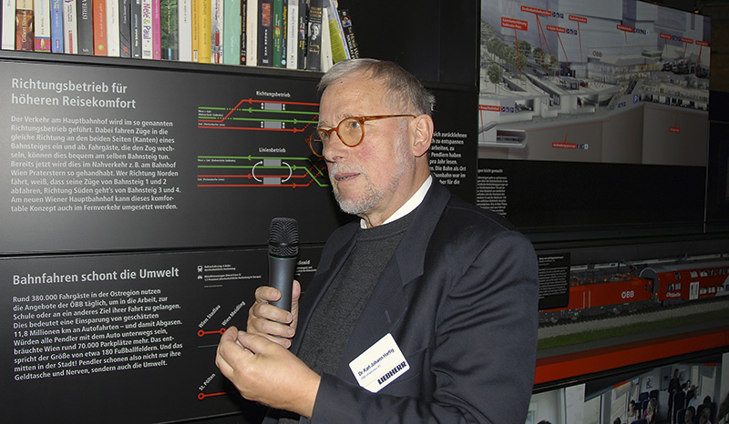 Um die Bauzeit zu verkürzen, wurden im Spätsommer 2011 zwei zusätzliche Turmdrehkrane der Typen 200 EC-B und 154 EC-H 6 Litronic eingesetzt. Diese Geräte bieten 32 m bzw. 38 m Hakenhöhe und 50 m bzw. 45 m Ausladung. Alle am Campus WU eingesetzten Liebherr-Krane sind für hohe Umschlagleistung ausgelegt; so bieten die beiden reichweitenstärksten Krane bei 70 m Ausladung noch Traglasten von bis zu 3000 kg.Auch beim Neubauprojekt »Hauptbahnhof Wien«, eine der bedeutendsten Infrastrukturmaßnahmen in Österreich, sind zahlreiche Liebherr-Maschinen und -Krane im Einsatz. Auf einer Gesamtfläche von 109 ha entsteht ein neuer Durchgangsbahnhof modernster Ausprägung, der eingebettet ist in ein neues Stadtviertel. »Insgesamt werden in dieses Projekt rund vier Milliarden Euro investiert«, sagte Dr. Karl-Johann Hartig, Projektleiter bei der ÖBB. »Rund 100 km neue Schienen und 300 modernste Weichen machen den neuen Hauptbahnhof zu einem hochleistungsfähigen Verkehrsknoten, mit dem der Wirtschaftsstandort Wien eine schnelle und leistungsstarke Verbindung zu den wichtigsten Märkten Europas erhält.«