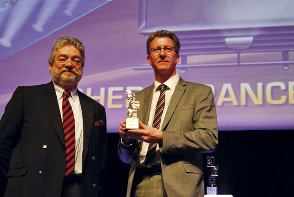Die Auszeichnung in Gold in der Kategorie »Equipment & Components« ging an das Kranfahreraufzugsystem LiUP, eine silberne Trophäe in der Kategorie »Engineering & Systems« an das neue Demolition Control System (LDC) für Liebherr-Abbruchbagger.