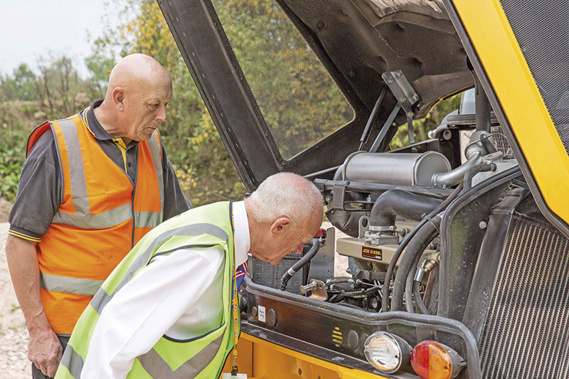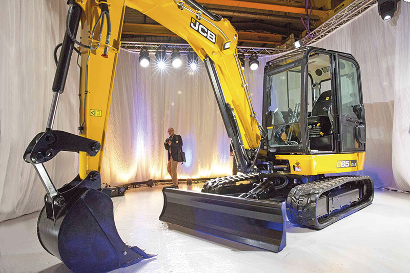 Der 100 C ist die effizienteste und leistungsstärkste Maschine ihrer Klasse«, schwärmte Tim Burnhope in seiner Präsentation des neuen 10-t-Midibaggers. Das Modell 100 C basiert auf dem Konzept des zum Jahresanfang vorgestellten Baggerkollegen 86 C, kann jedoch mit einem verlängertem Fahrwerk, einem stärkeren Motor sowie einer leistungsfähigeren Hydraulik punkten. Der größer dimensionierte Löffelstiel erreicht eine Grabtiefe von 4,6 m und eine Ausschütthöhe von 5,6 m. Neben dem 100 C präsentierte JCB auch den neuen 6,5-t-Midibagger 65 R. »Das R steht hierbei für den reduzierten Hecküberstand«, unterstrich Rob White, JCB Product Sales Manager. Der Midibagger wird von einem Tier4 Final/EU-Stufe 3 B-konformen Motor angetrieben. Den Anwender immer im Blick, wurde der 65 R besonderes wartungsfreundlich entwickelt. So liegt das Schmierintervall bei 500 Stunden.