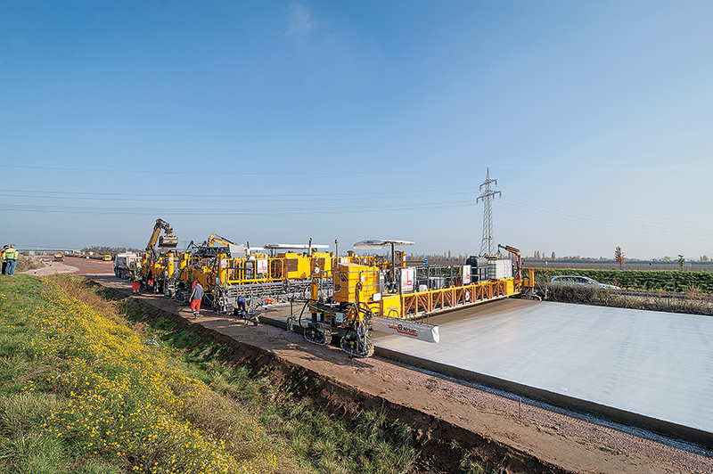 Ist die Logistik gut organisiert, sorgt die intelligente Technik der Wirtgen-Maschinen für einen präzisen und hochwertigen Einbau. Im Unterbetonfertiger arbeiten Dübel- und Ankersetzer, der Oberbetonfertiger sorgt mit dem Quer- und Längsglätter für eine ebene Oberfläche. Beide Gleitschalungsfertiger besitzen eine intelligente Steuerung, die ein ideales Einbauergebnis ermöglicht. Im Anschluss sorgt ein Nachbehandlungsgerät des Typs TCM 1800 für das Finish der Oberfläche nach Wunsch.