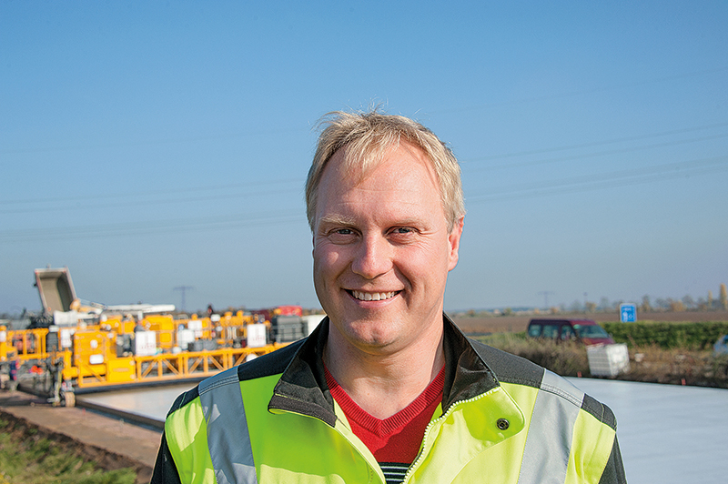 Eine beachtliche Leistung, für die Einbaumeister Jörg Ackermann von Bickhardt Bau, seit 25 Jahren im Betonbau beschäftigt, ein himmlisches Bild fand: »Diese Bauweise gleicht einem Planetengetriebe: Es gibt viele Bausteine, die für den Erfolg wichtig sind, aber der Gleitschalungsfertiger von Wirtgen gibt den Takt vor. Er ist unser Sonnenrad.«