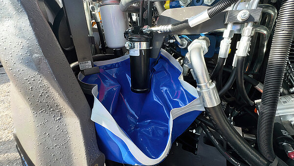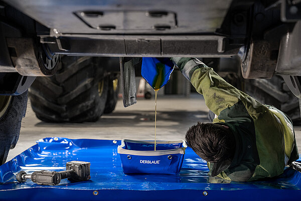 Die Aqua Evolution Systems GmbH entwickelt und vertreibt unter der Marke DERBLAUE® hochflexible Flüssigkeits-Auffangsysteme. Für den Bereich Baumaschinen sind besonders das Service-Set, der Flex-Trichter und die Unterlegwannen geeignet, die einen sauberen, einfachen und kontrollierten Umgang mit Ölen und Hydraulikflüssigkeiten ermöglichen. Aufgrund integrierter Biegemetallelemente können die Produkte des BLAUEN individuell angepasst werden und erleichtern so den Service besonders an schwer zugänglichen Engstellen.