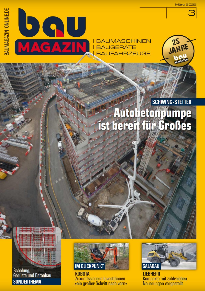 Das bauMAGAZIN – Das  auflagenstarke Fachorgan für Baumaschinen, Baugeräte und Baufahrzeuge – erscheint im gesamten europäisch-deutschsprachigen Raum und bietet monatlich umfangreiche Informationen der Baubranche aus den Bereichen: